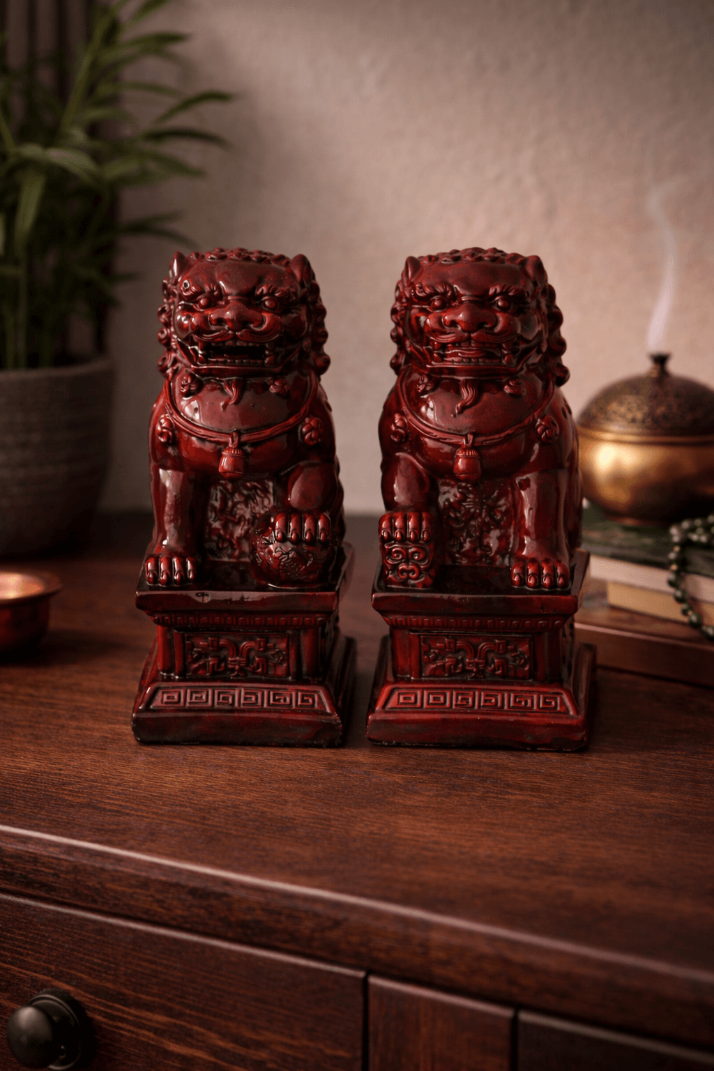 Vroeger werden ze gebruikt om demonen uit paleizen te verjagen. Tegenwoordig worden ze geplaatst op een vensterbank, tafel of op een dressoir om bescherming te bieden en daarnaast om elke vorm van negatieve energie af te weren.