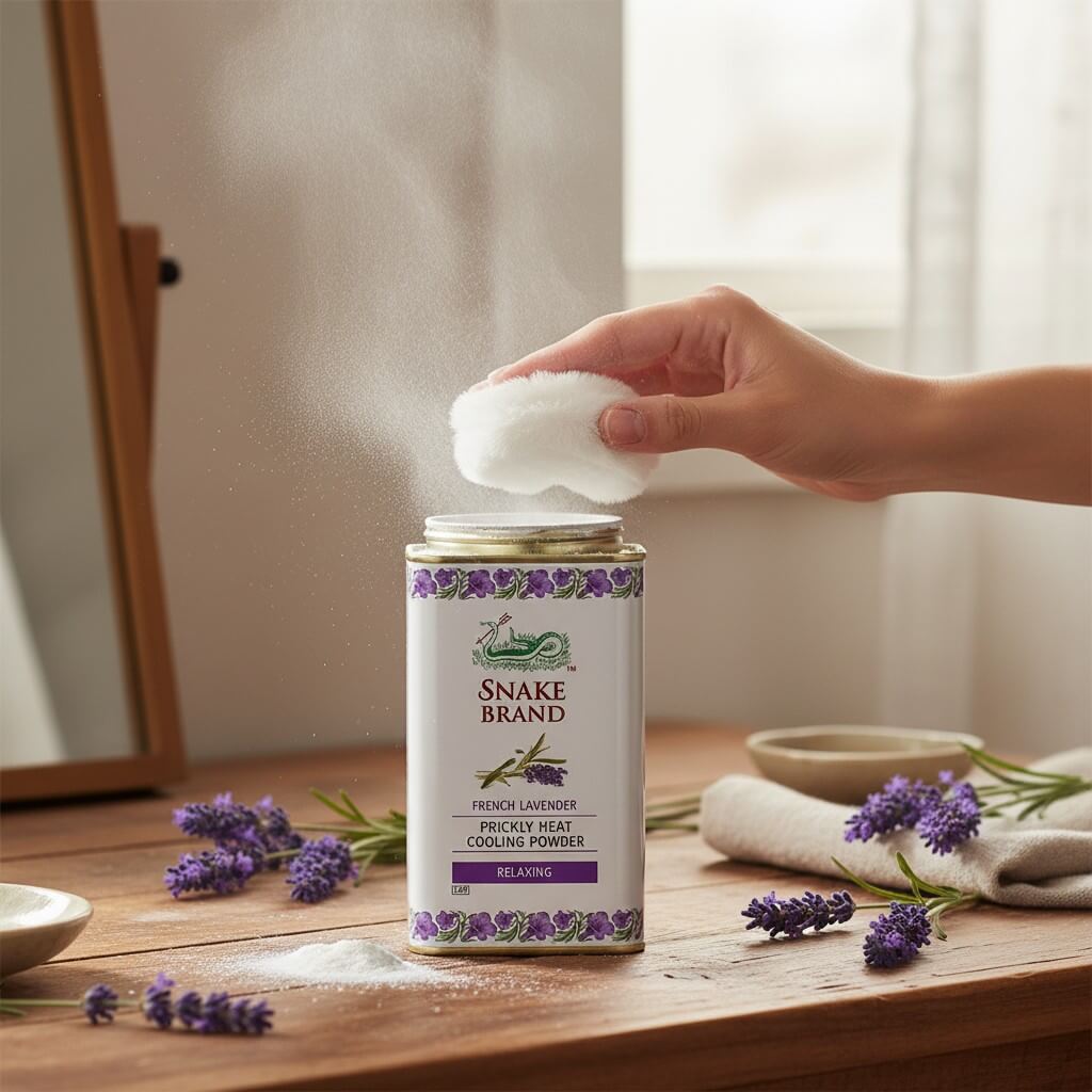 Snake Brand Prickly Heat Cooling Powder is een bekende talkpoeder uit Thailand die speciaal is ontwikkeld voor warm en vochtig klimaat. De poeder helpt de huid droog, fris en comfortabel te houden.