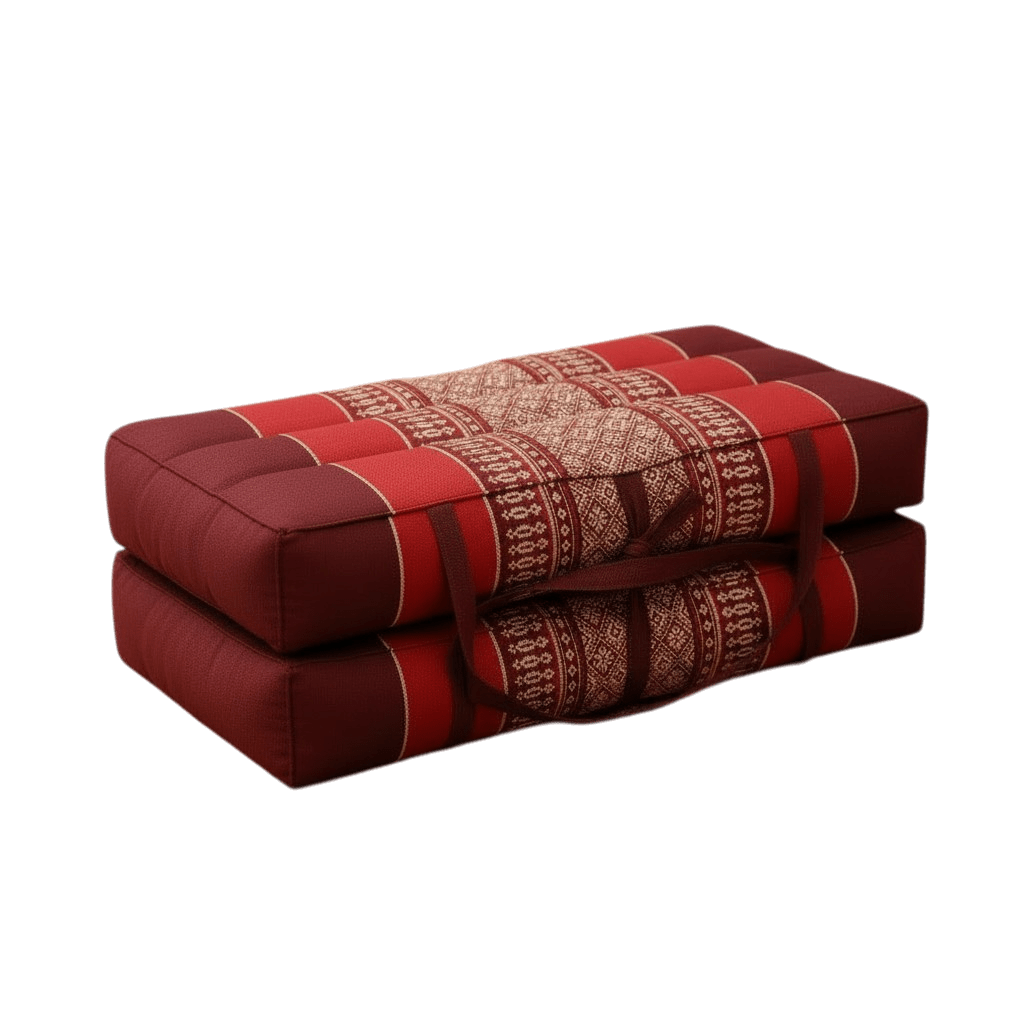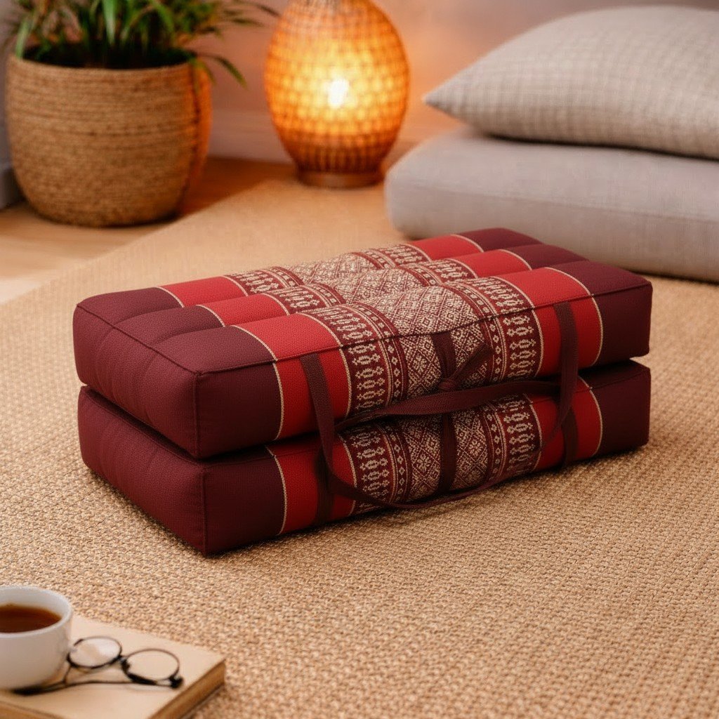 Draagbaar meditatie en yoga kussen bordeaux rood – opvouwbaar zitkussen met kapok