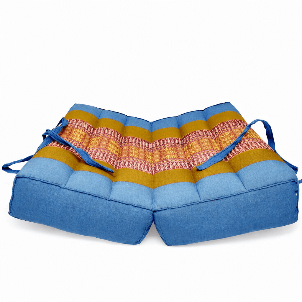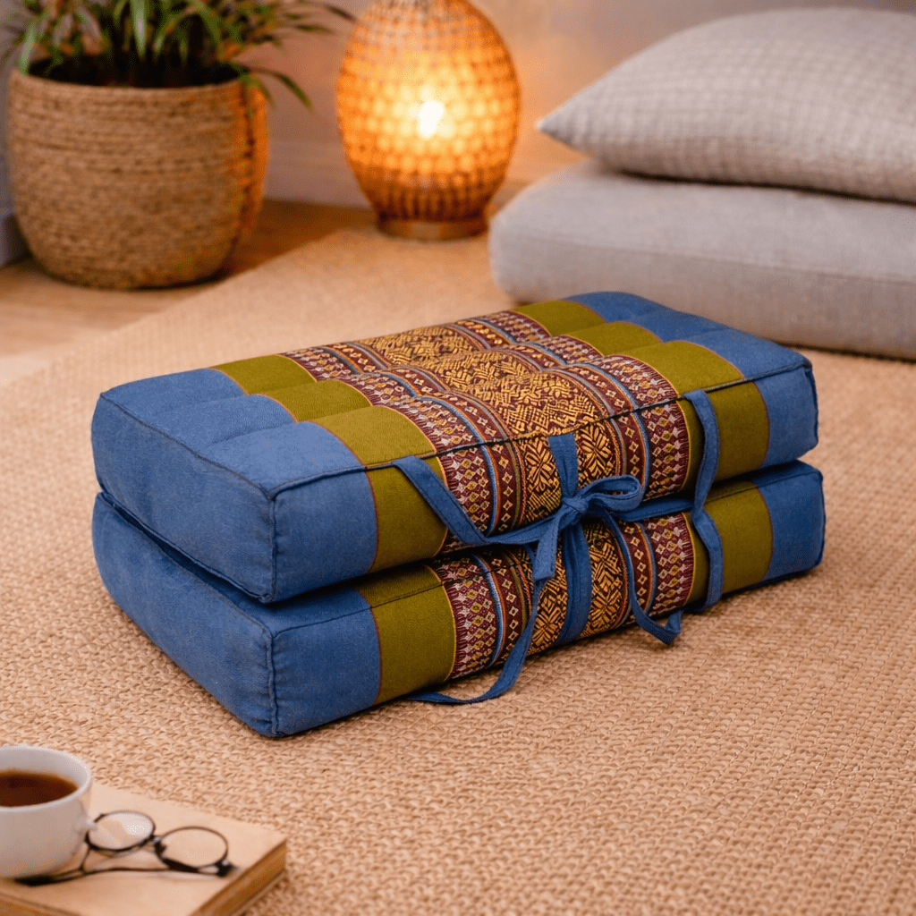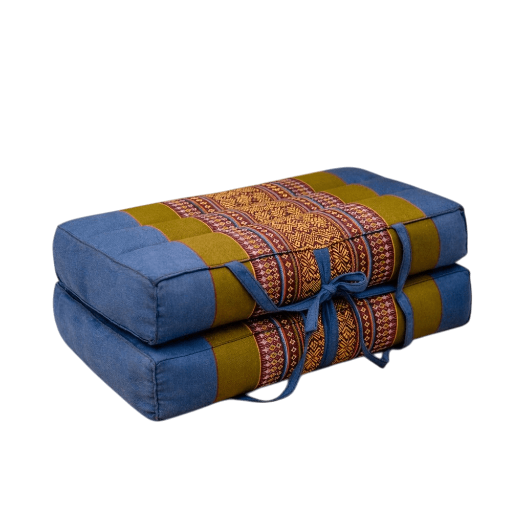 Draagbaar meditatiekussen groen blauw – opvouwbaar zitkussen met kapok