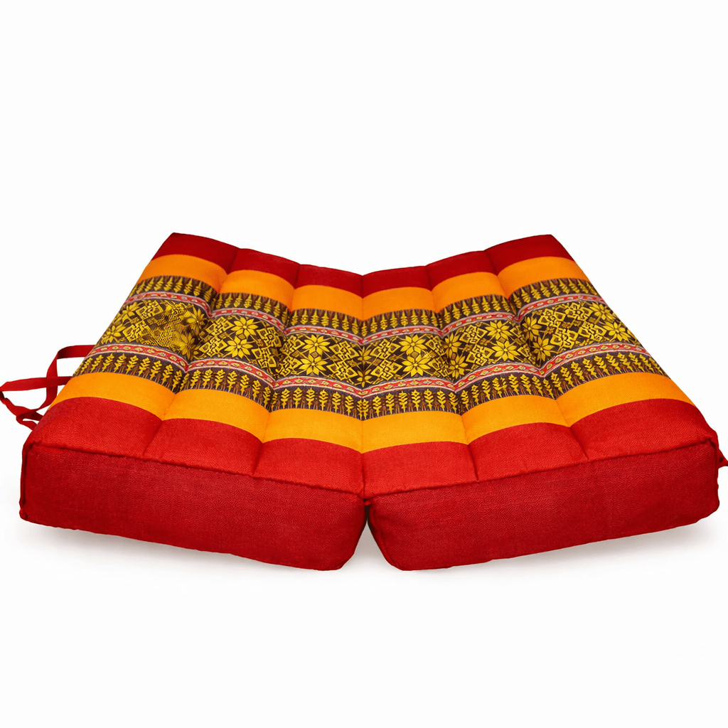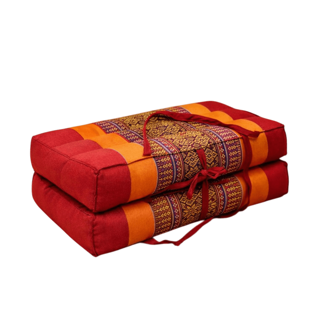 Draagbaar meditatiekussen oranje rood – opvouwbaar zitkussen met kapok