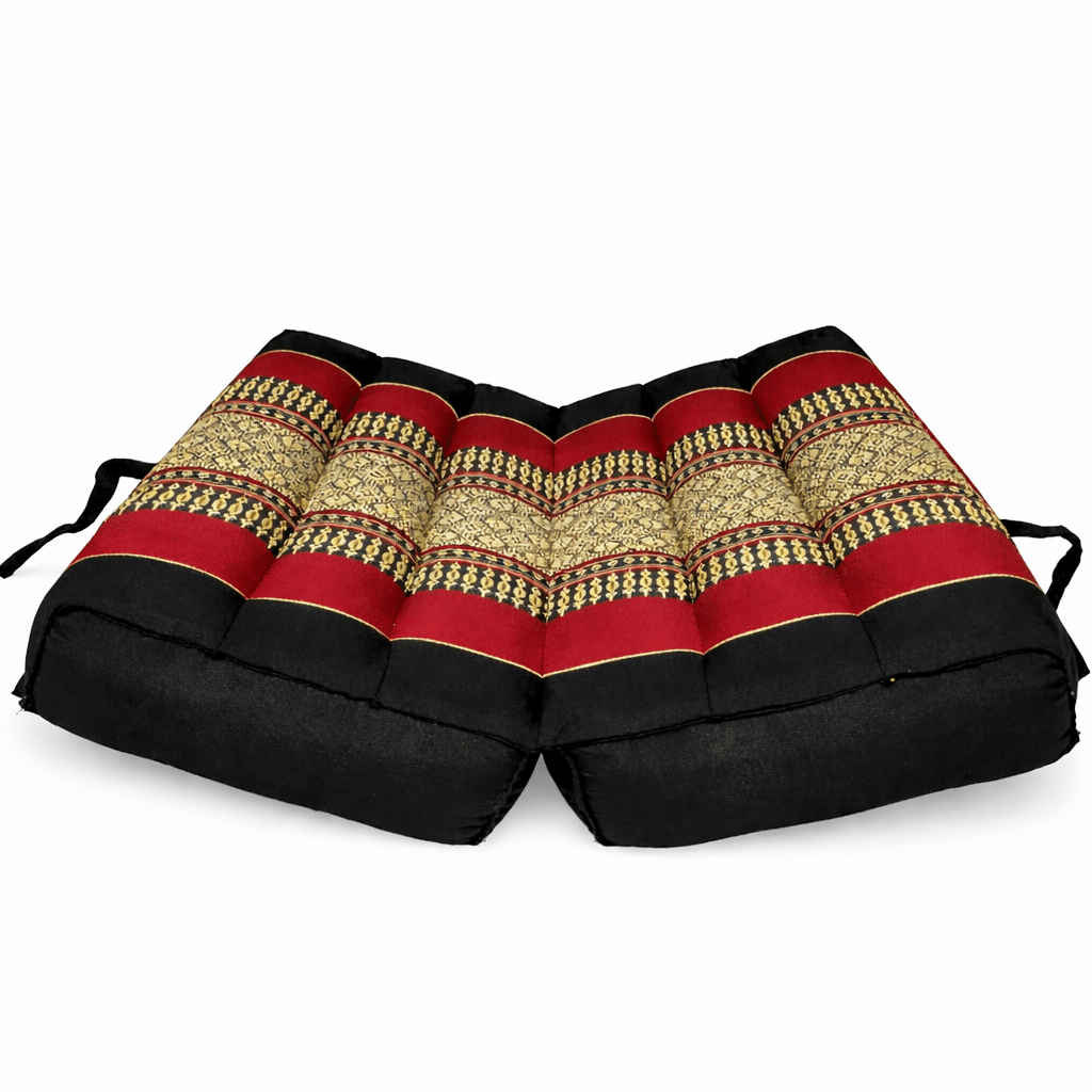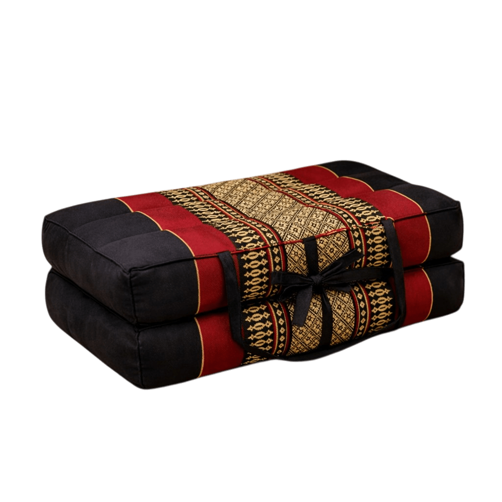 Draagbaar meditatiekussen rood zwart – opvouwbaar zitkussen met kapok