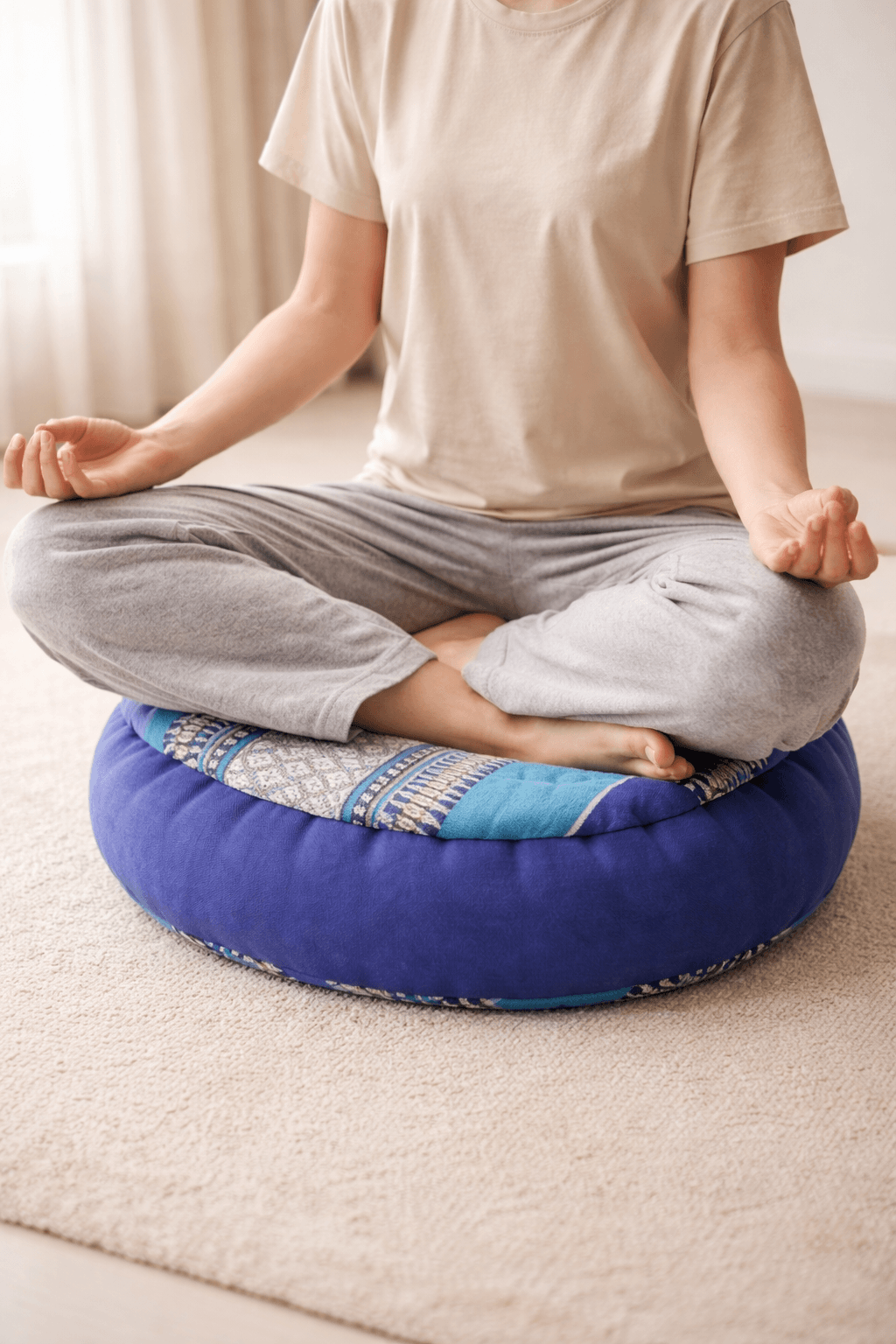 Dit kussen is geschikt voor meditatie, yoga, ontspanning en als zitkussen in huis.