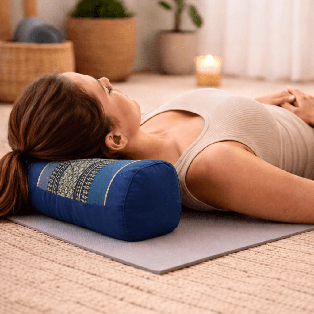 Nekkussen bone blauw – ergonomisch yoga en meditatiekussen met kapok