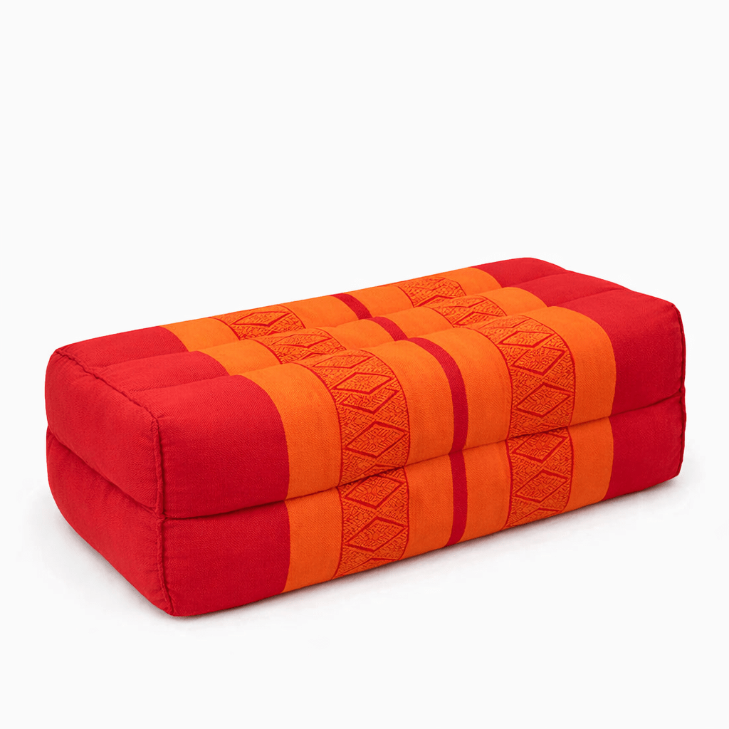Meditatiekussen oranje rood – rechthoekig yoga blokkussen met kapok