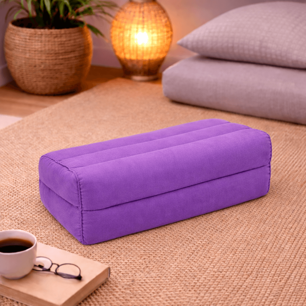 Dit meditatiekussen in paars straalt rust, diepte en balans uit. De rijke kleur zorgt voor een serene sfeer, terwijl het stevige blokkussen je lichaam optimaal ondersteunt tijdens yoga, meditatie en ontspanning.