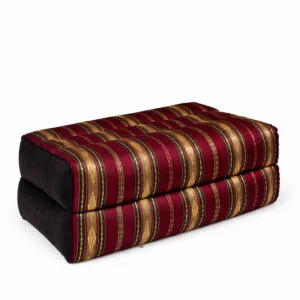 Meditatiekussen silklook rood goud – rechthoekig yoga blokkussen met kapok