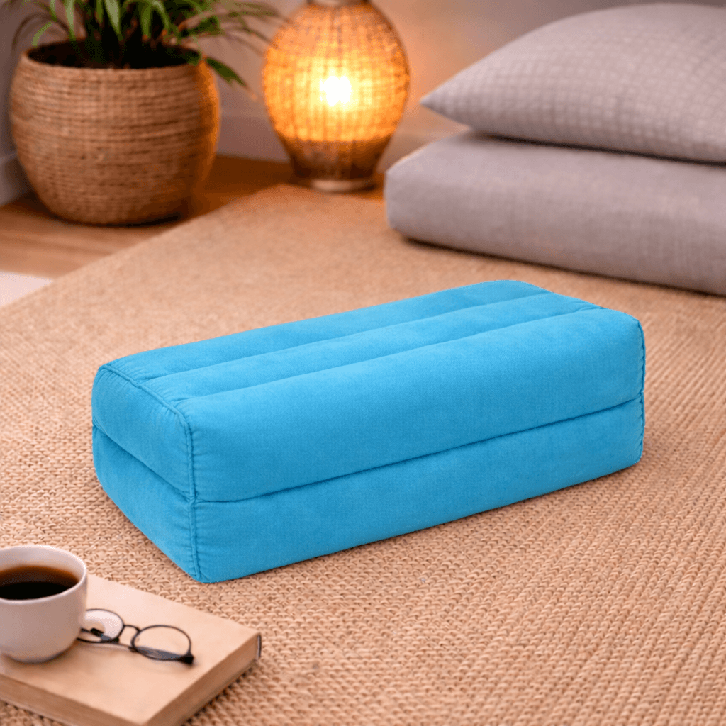 Meditatiekussen turquoise – rechthoekig yoga blokkussen met kapok