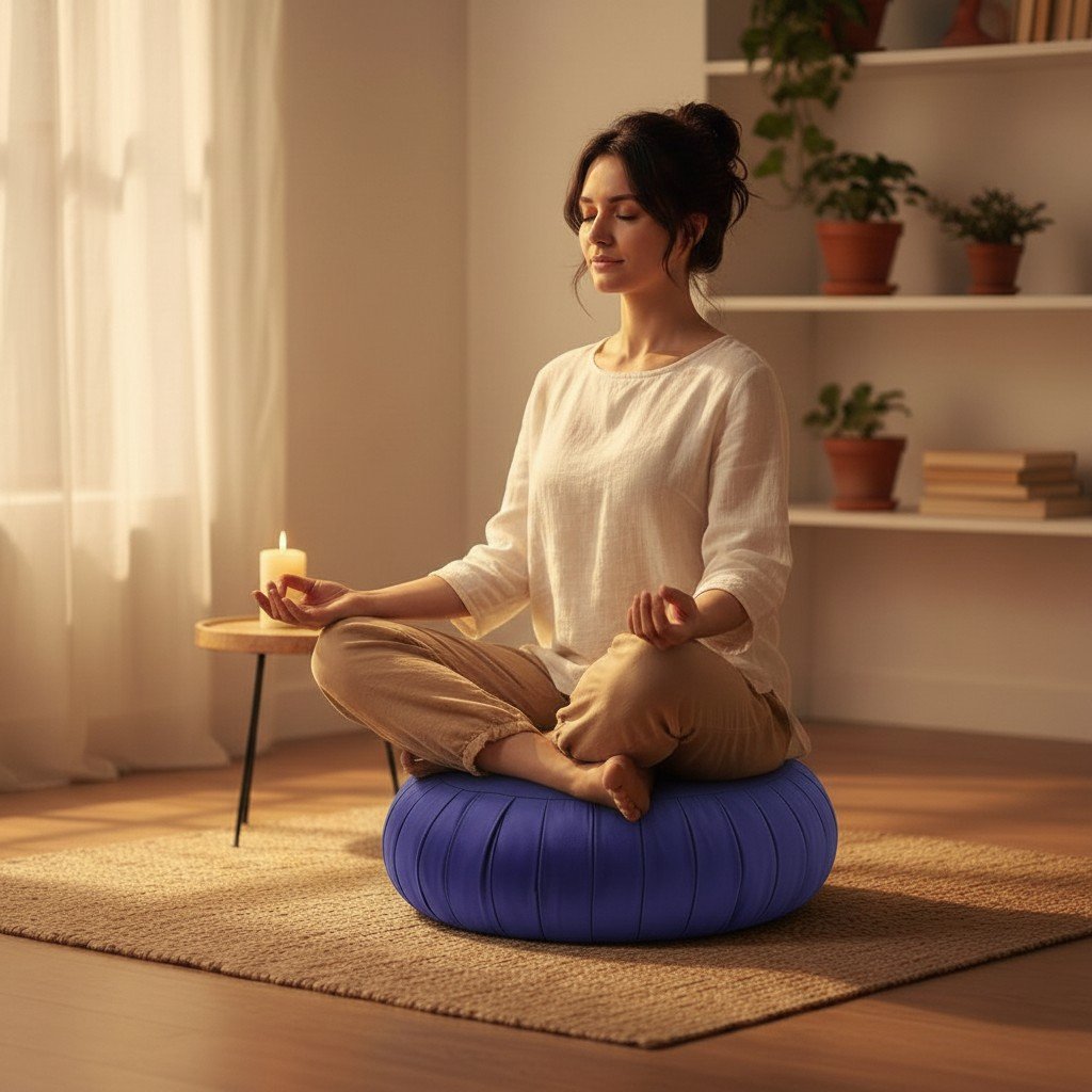 Dit Zafu kussen ondersteunt je lichaam op een natuurlijke manier. Door de lichte verhoging kantelt je bekken naar voren, waardoor je rug automatisch rechter blijft en je minder spanning ervaart.