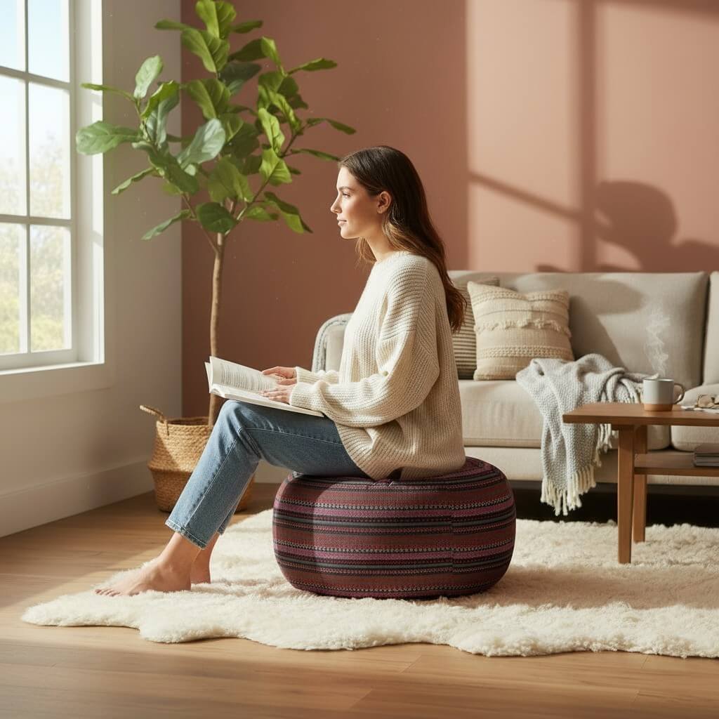 Deze poef is eenvoudig te verplaatsen en past zich aan jouw behoeften aan. Gebruik hem in de woonkamer, slaapkamer of zelfs in een rustige meditatiehoek.
