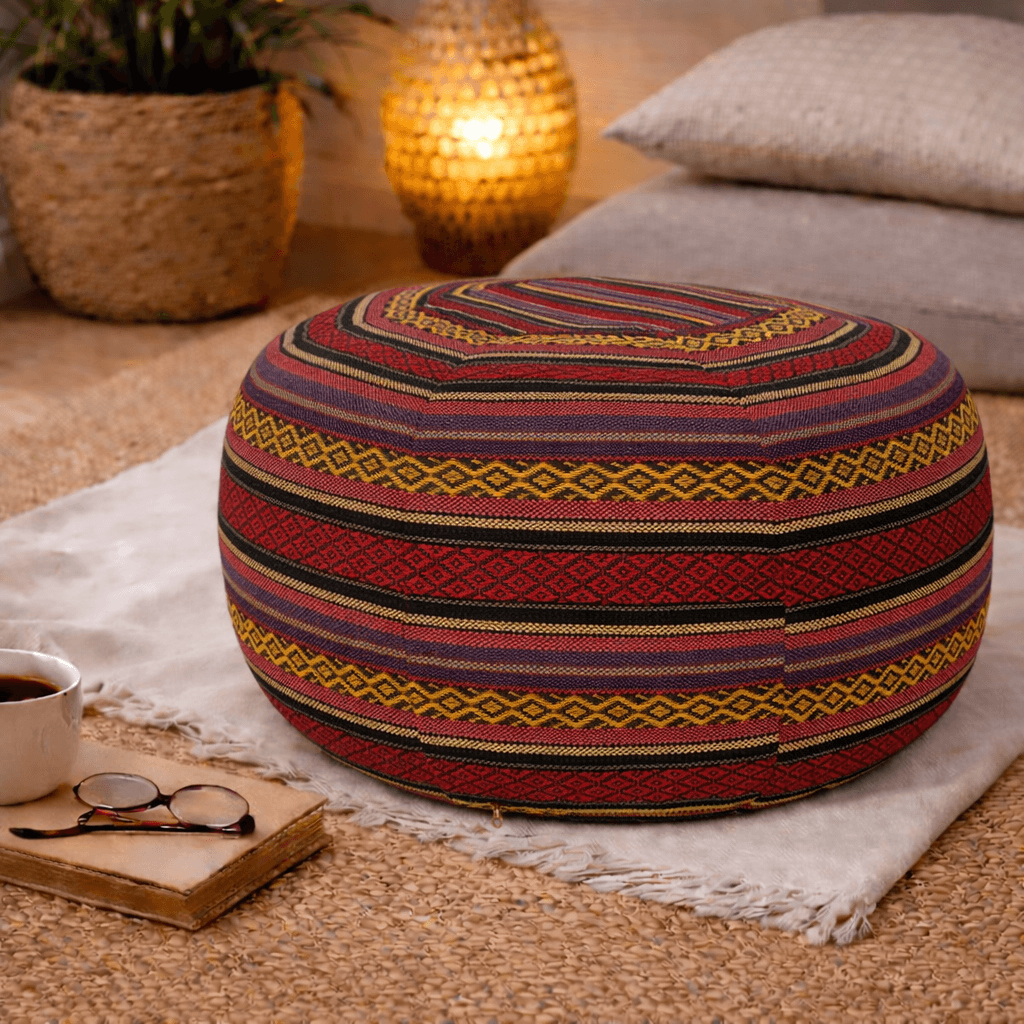 De Poef Sukhothai is een stevige Thaise zitpoef die bekend staat om zijn robuuste karakter. Dankzij de compacte vorm en solide kapokvulling biedt deze poef een betrouwbare zitoplossing die geschikt is voor dagelijks gebruik.