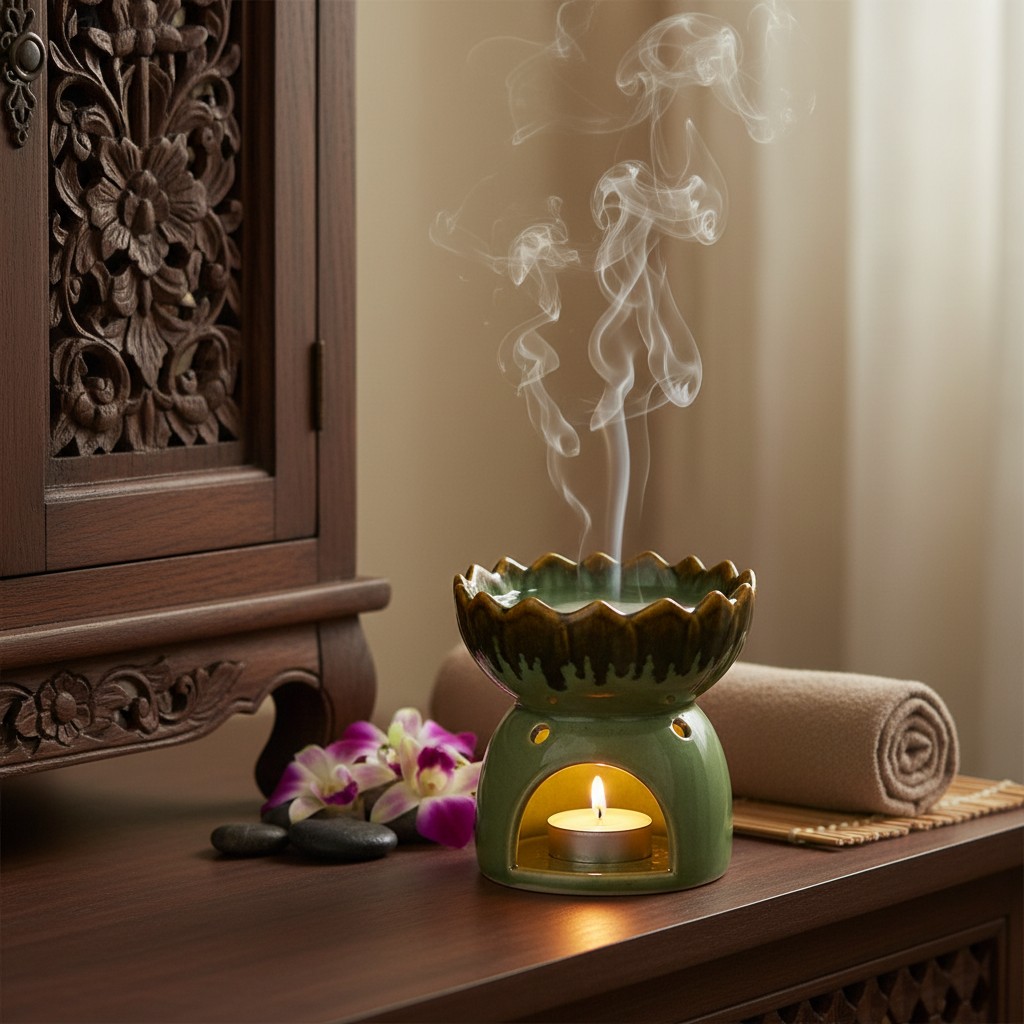 Lichtgroen wordt vaak geassocieerd met balans, rust en vernieuwing, wat deze geurbrander bijzonder geschikt maakt voor ontspanningsmomenten.