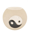 Kleur: zandkleurige keramiek en wit geglazuurde theelichthouder in de palm