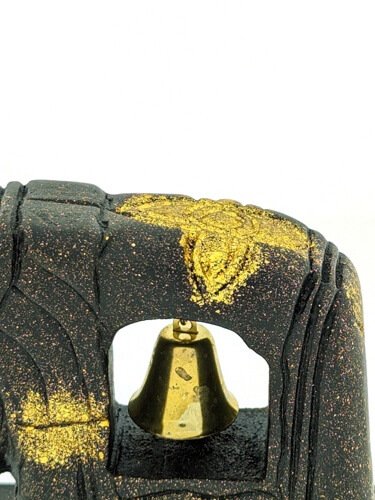 Deze Thaise bel met olifant is een bijzonder decoratief object dat niet alleen mooi is om te zien, maar ook een rustgevend geluid geeft. De combinatie van zwart, bruin en goud zorgt voor een warme en authentieke uitstraling.