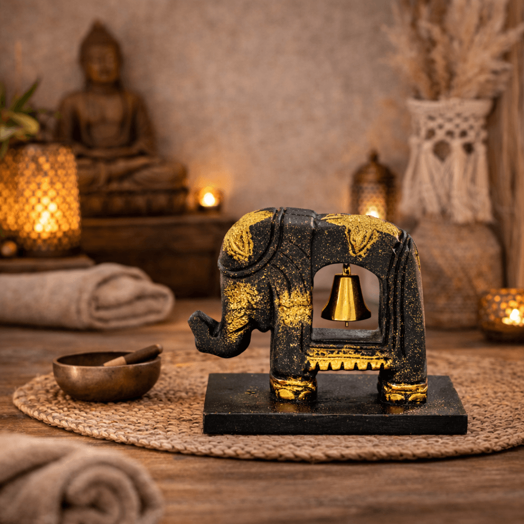 De olifant wordt in veel culturen gezien als een symbool van bescherming en voorspoed. In combinatie met de bel zorgt dit object voor een harmonieuze en rustgevende sfeer in huis.