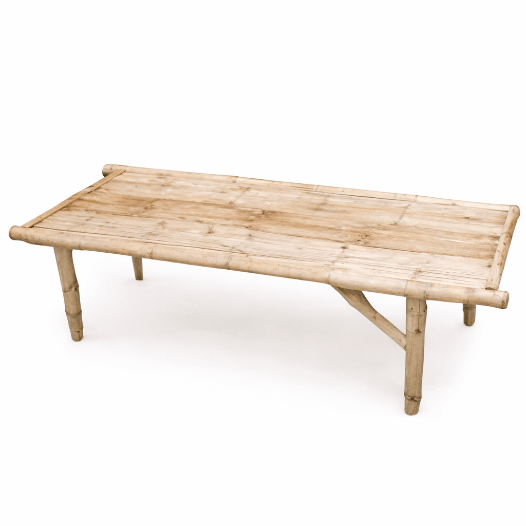 Dit tempelbed van bamboe is een bijzonder meubelstuk dat rust en eenvoud uitstraalt. Het ontwerp is geïnspireerd op traditionele Aziatische rustbedden die vaak worden gebruikt voor ontspanning of meditatie.