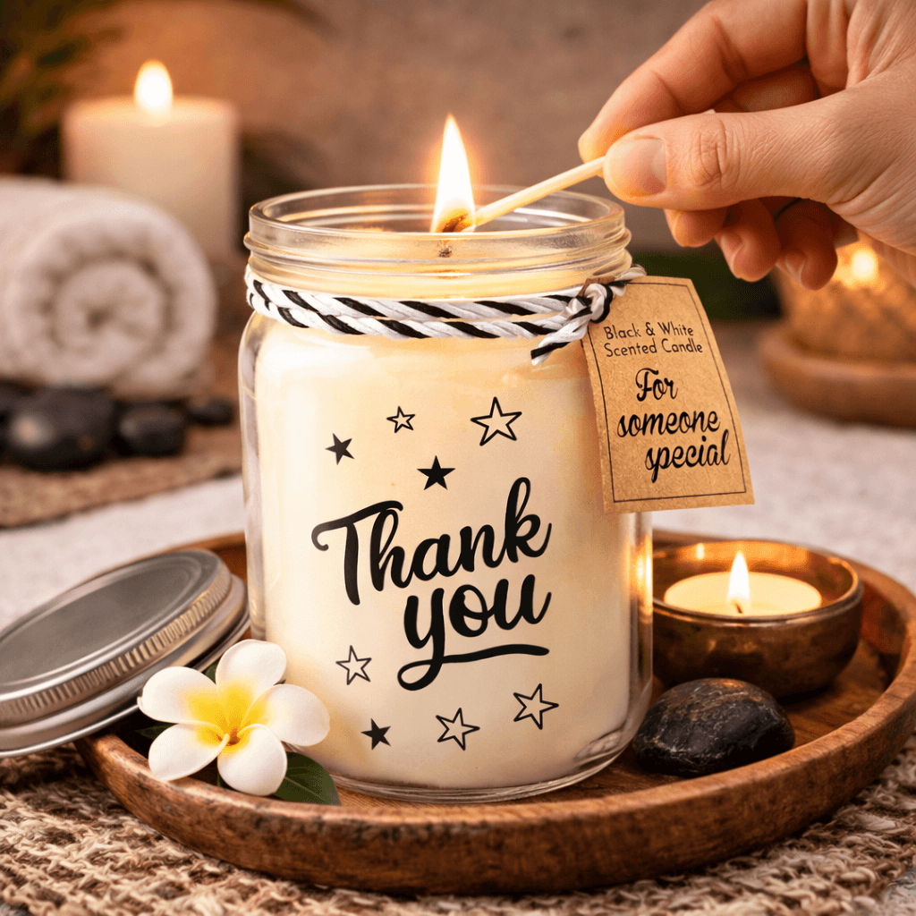 Door de tekst “Thank You” is deze kaars ideaal om cadeau te geven bij verschillende momenten.