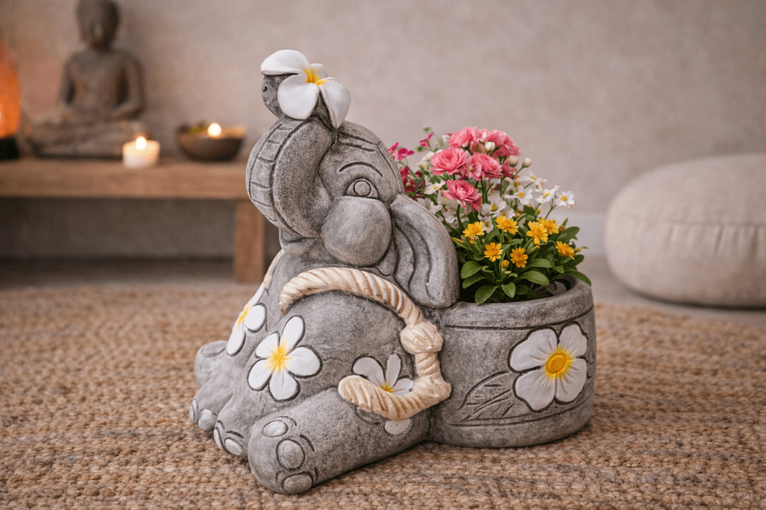 De olifant wordt vaak geassocieerd met wijsheid, stabiliteit en positieve energie. Daardoor past deze plantenpot goed in een rustgevend interieur of een tuin met een natuurlijke uitstraling.
