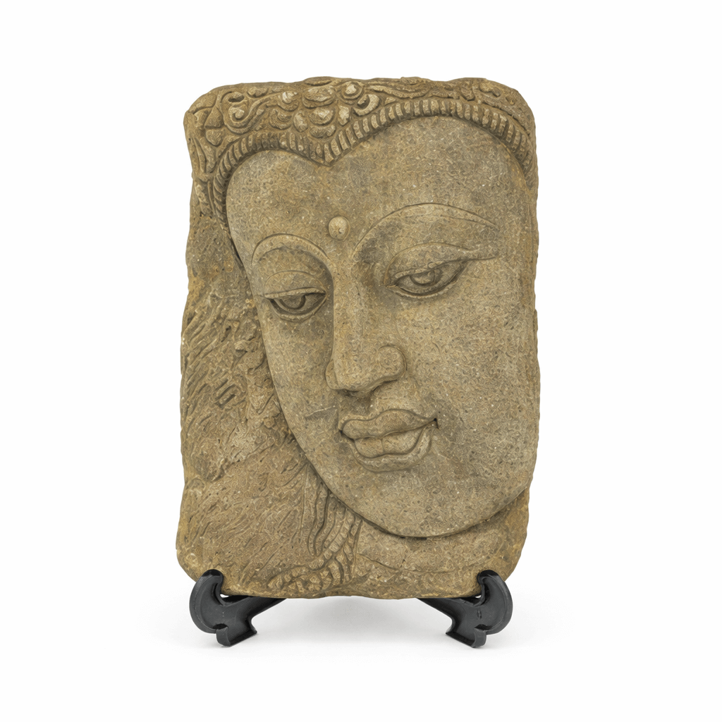 Deze Boeddha wanddecoratie van grijs-groen zandsteen brengt rust en balans in je interieur. De subtiele kleurcombinatie geeft het beeld een natuurlijke en tijdloze uitstraling.