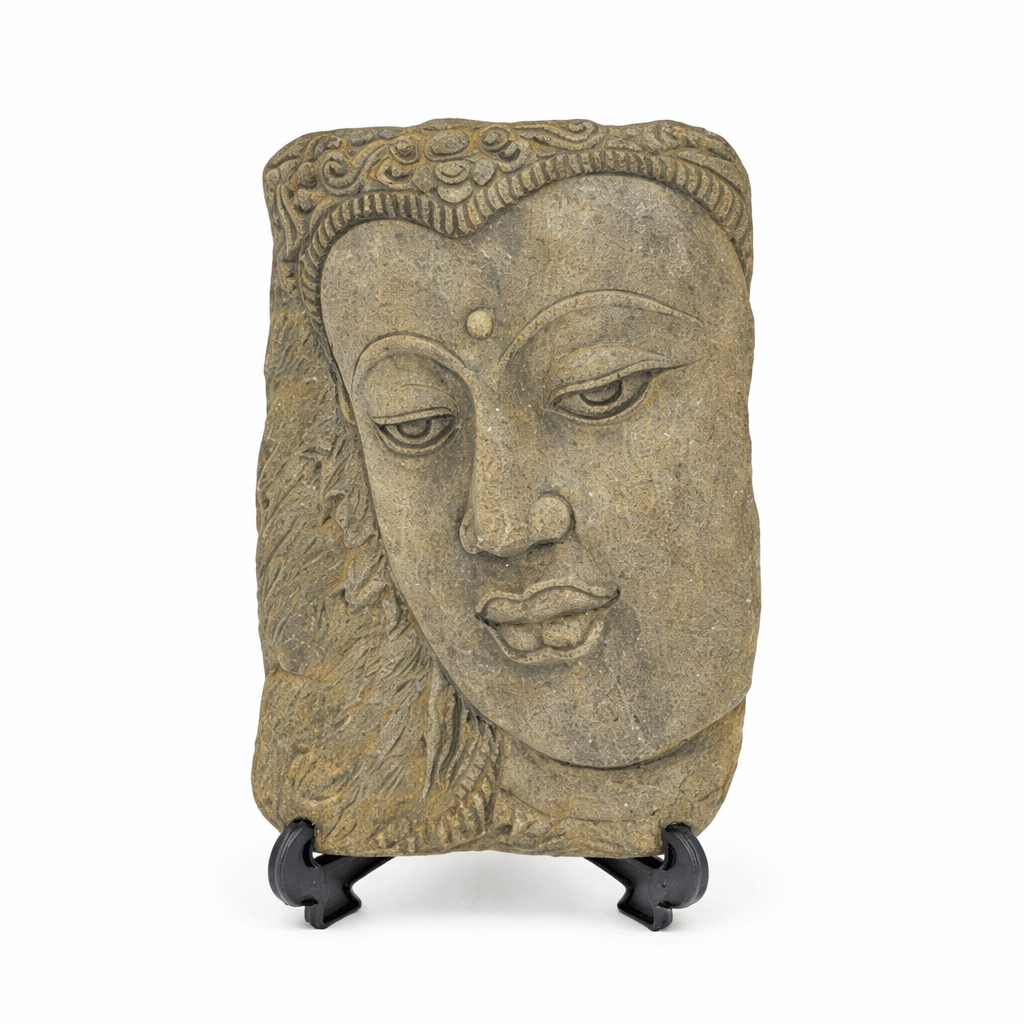 Boeddha grijs zandsteen – spirituele wanddecoratie