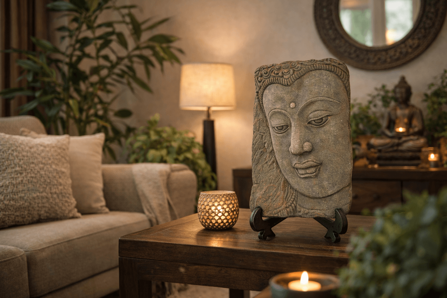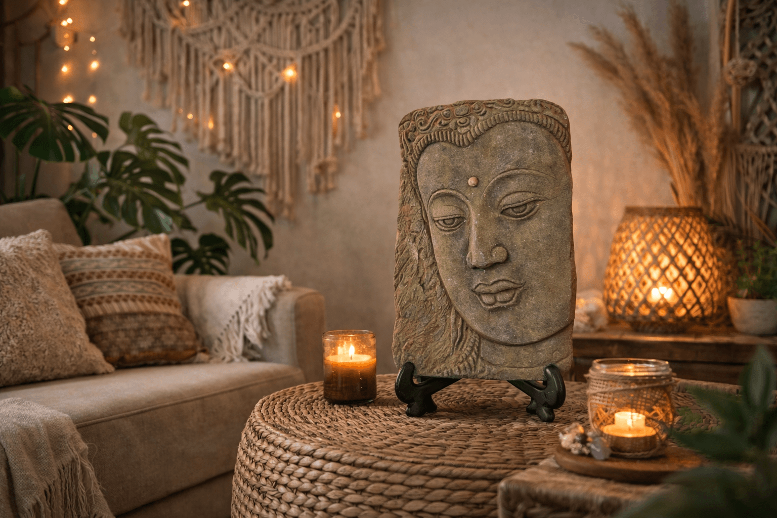 Boeddha decoraties worden vaak geplaatst om een kalme en vredige sfeer te creëren. Hierdoor zijn ze populair in woonkamers, meditatiehoeken en yogaruimtes.