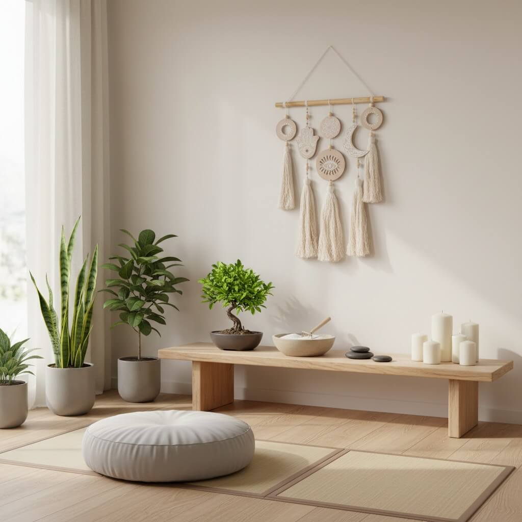Ja, de combinatie van terracotta, macramé en spirituele symbolen past perfect binnen een boho of spirituele woonstijl.