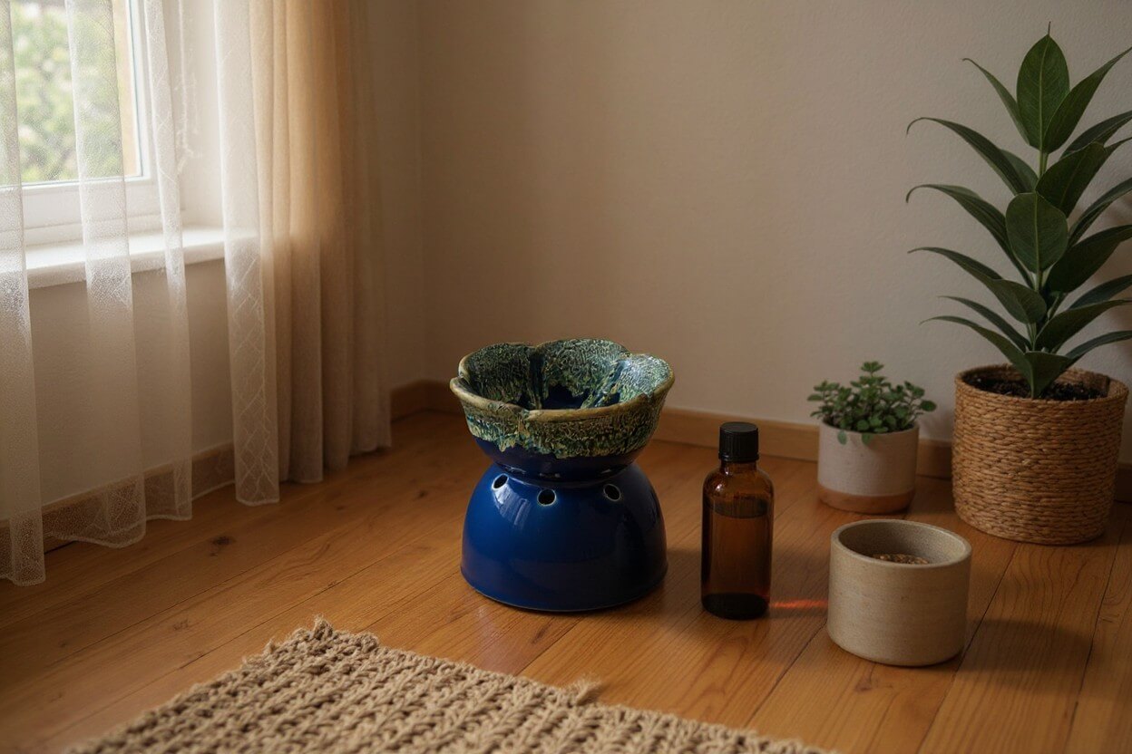 De blauwe kleur staat symbool voor rust, helderheid en evenwicht, wat deze geurbrander extra passend maakt voor ontspanningsmomenten.
