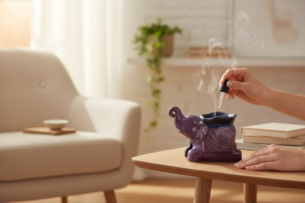 Vul het schaaltje met water en voeg enkele druppels etherische olie toe. Plaats een brandend theelichtje onderin zodat de geur zich geleidelijk verspreidt.