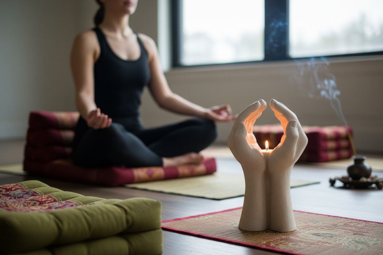 Het zachte licht van een brandend theelichtje versterkt het gevoel van rust en harmonie. Deze gebedshand theelichthouder is ideaal voor:
